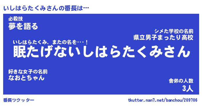 | 肩書あだ名 | 『いしはらたくみ店長』 |