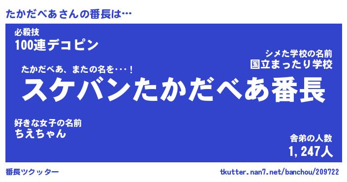 | 肩書あだ名 | 『たかだべあ店長』『たかだべあ国家主席』 |