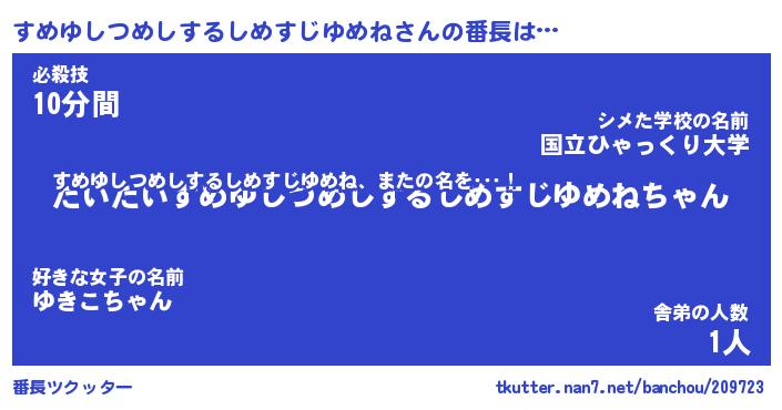 | 男性向けラノベタイトル風あだ名 | 『すめゆしつめしするしめすじゆめねの憂鬱』 |