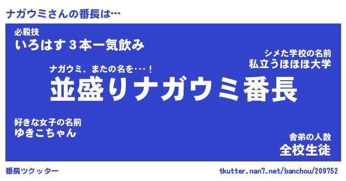 | ファンタジー風あだ名 | 『ナガフェル』『エターナルナガウミー』 |