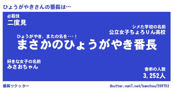 | ヒーロー風カッコイイあだ名 | 『スーパーヒョウガヤキ』『幻影騎士ヒョ』 |