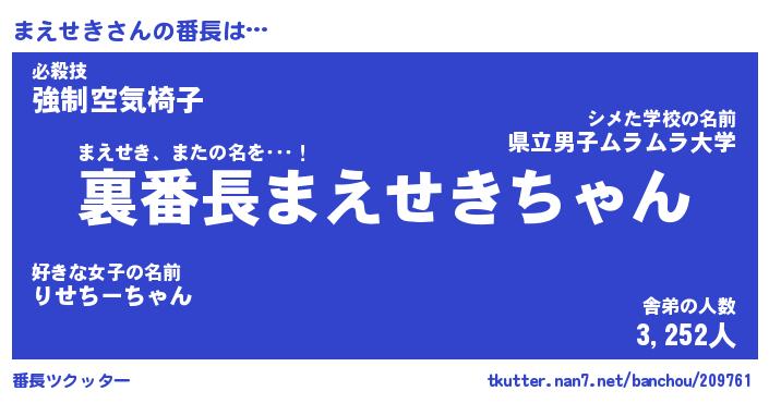 | ヘコむあだ名 | 『まえもー』『牛乳』『まえっちょ』 |