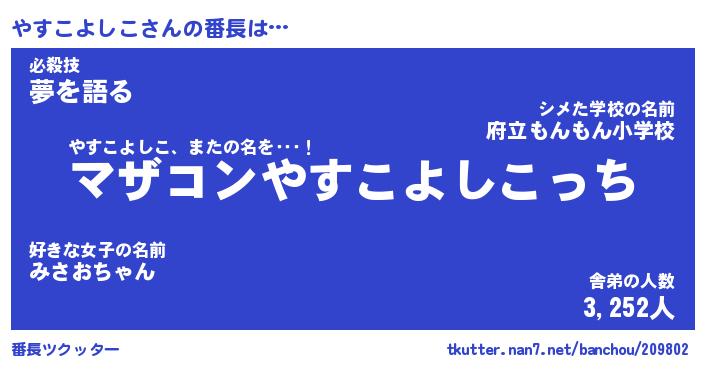 | ピコ太郎風あだ名 | 『ヤコ四郎』『ピヤ次郎』『ヤス八郎』 |