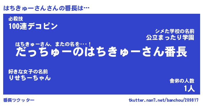 | 伝説のあだ名 | 『伝説のスナイパーはちきゅーさん』 |