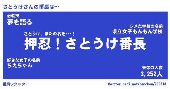 | 意味不明あだ名 | 『ペロリンさとうけ』『永久保存さとうけ』 |