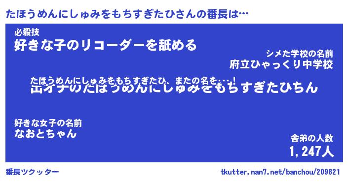 | 意味不明あだ名 | 『ペロリンたほうめんにしゅみをもちすぎたひ』 |