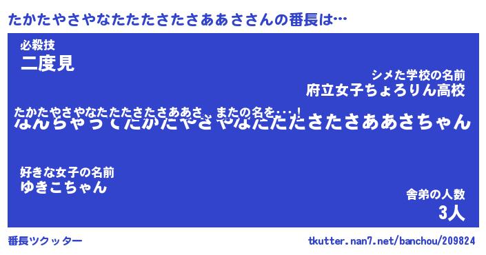 | ヒーロー風カッコイイあだ名 | 『スーパータカタヤサヤナタタタサタサアアサ』 |