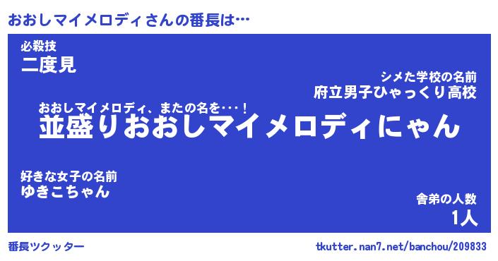 | 男性向けラノベタイトル風あだ名 | 『おおしマイメロディの憂鬱』 |
