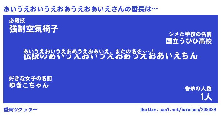 | 伝説のあだ名 | 『伝説のスナイパーあいうえおいうえおあうえおあいえ』 |