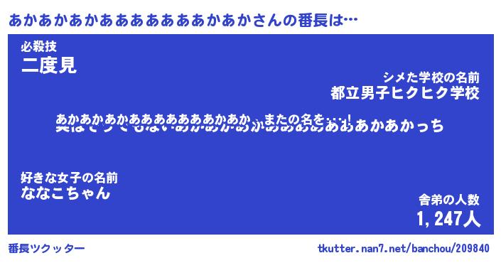 | ヒーロー風カッコイイあだ名 | 『スーパーアカアカアカアアアアアアアカアカ』 |