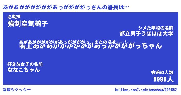 | ヒーロー風カッコイイあだ名 | 『スーパーアガアガガガガガガアッガガガガッ』 |