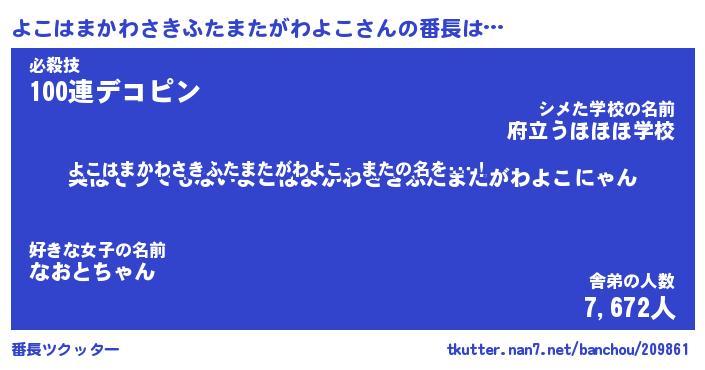 | 肩書あだ名 | 『よこはまかわさきふたまたがわよこ店長』 |