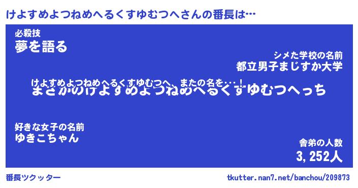 | 肩書あだ名 | 『けよすめよつねめへるくすゆむつへ店長』 |