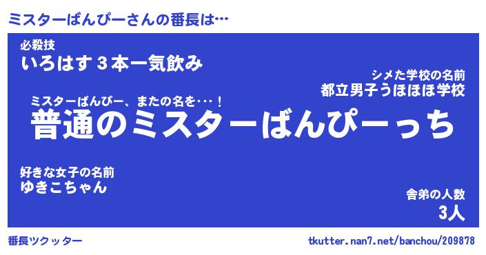 | 恥ずかしいあだ名 | 『プリティーミスターばんぴー』 |