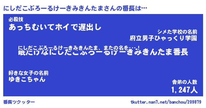 | 肩書あだ名 | 『にしだこぶろーるけーきみきんたま御曹司』 |