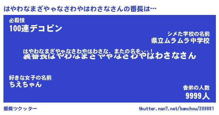 | ヒーロー風カッコイイあだ名 | 『スーパーハヤワナマザヤャナサワヤハワサナ』 |
