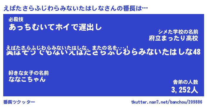 | ヒーロー風カッコイイあだ名 | 『スーパーエバタサラフジワラミナイタハシナ』 |