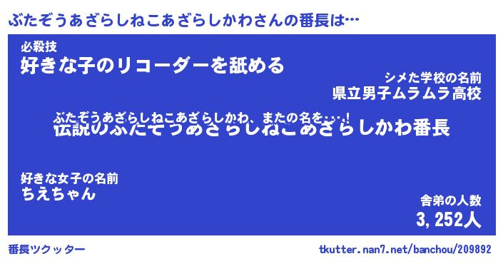 | 料理風あだ名 | 『ほっこり♪ぶたぞうあざらしねこあざらしかわの味噌そぼろ煮』 |