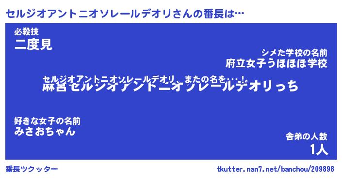 | 欧米人風あだ名 | 『マイケルセルジオアントニオソレールデオリ』 |