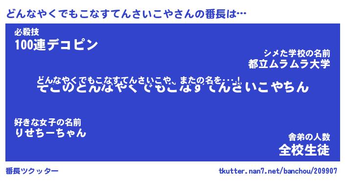 | ヒーロー風カッコイイあだ名 | 『スーパードンナヤクデモコナステンサイコヤ』 |