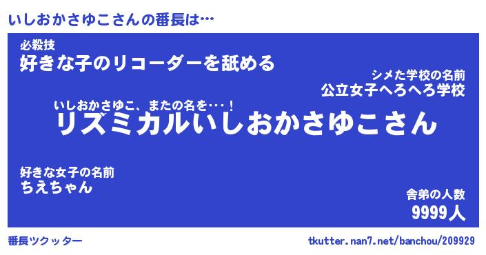 | 意味不明あだ名 | 『ペロリンいしおかさゆこ』 |
