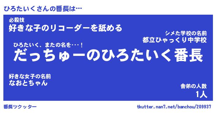 | 肩書あだ名 | 『ひろたいく御曹司』『ひろたいく班長』 |