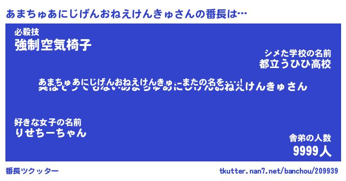 | 欧米人風あだ名 | 『マイケルあまちゅあにじげんおねえけんきゅ』 |