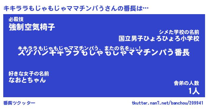 | 伝説のあだ名 | 『不死鳥の竜騎士キキララもじゃもじゃママチンパう』 |