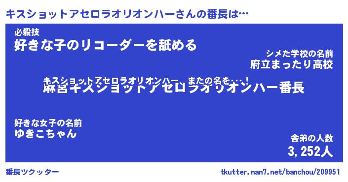 | 欧米人風あだ名 | 『マイケルキスショットアセロラオリオンハー』 |