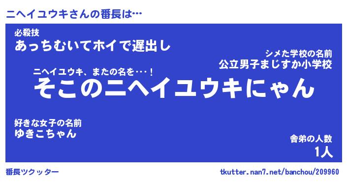| ヒーロー風カッコイイあだ名 | 『スーパーニヘイユウキ』『黄金騎士ニヘ』 |