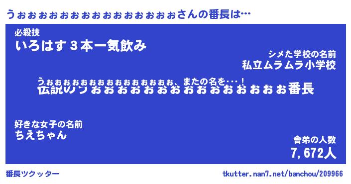 | 男性向けラノベタイトル風あだ名 | 『うぉぉぉぉぉぉぉぉぉぉぉぉぉぉぉの憂鬱』 |