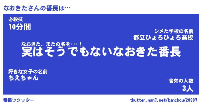 | 男性向けラノベタイトル風あだ名 | 『ナオキタアートオンライン』 |