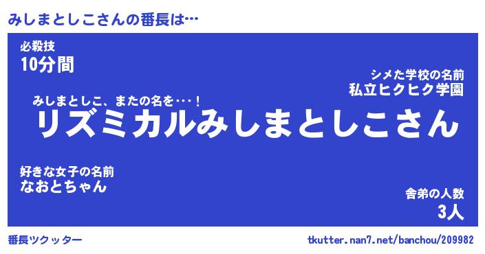 | 肩書あだ名 | 『みしまとしこ店長』『みしまとしこ班長』 |