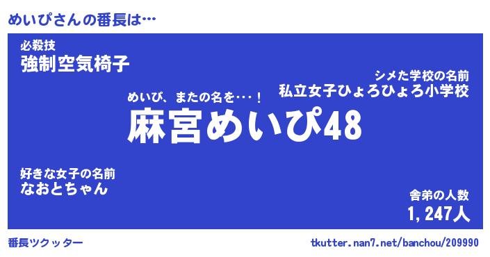 | ヘコむあだ名 | 『めいふぇ~』『豆乳』『めいっちょ』 |