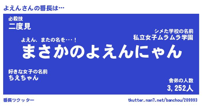 | 意味不明あだ名 | 『ペロリンよえん』『よえんフォーエバー』 |