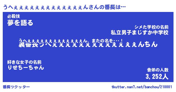 | 料理風あだ名 | 『節約★うへぇぇぇぇぇぇぇぇぇぇぇぇぇんと油揚げの玉子丼』 |