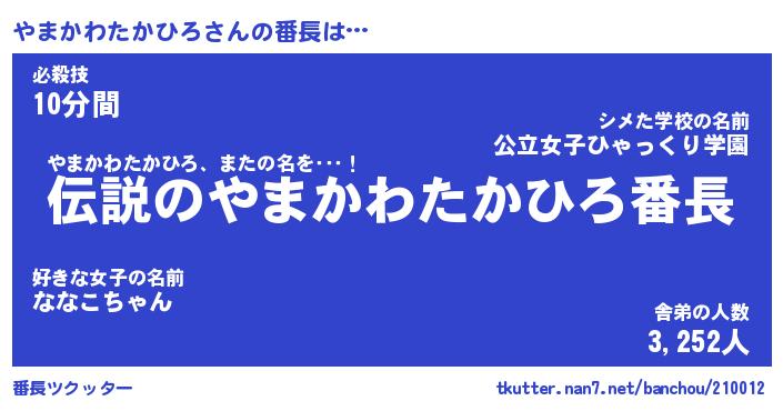 | 伝説のあだ名 | 『伝説のスナイパーやまかわたかひろ』 |