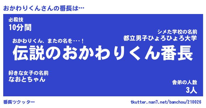 | ピコ太郎風あだ名 | 『オコ四郎』『ピオ八郎』『オカ六郎』 |
