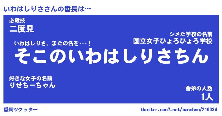 | 2回繰り返すあだ名 | 『いわいわ』『いいわわ』『いそいそ』 |