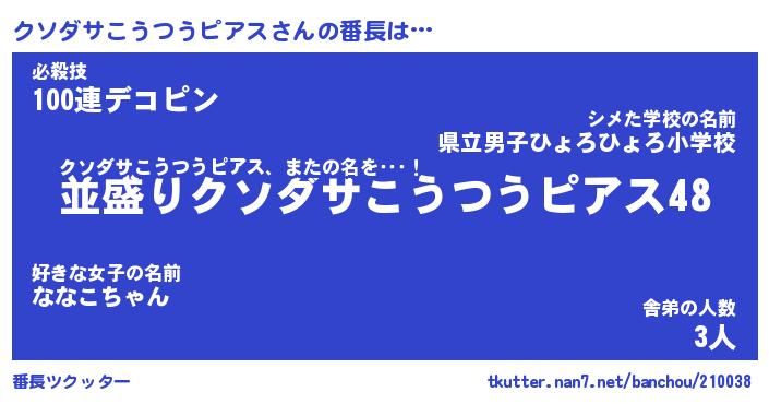 | 意味不明あだ名 | 『ペロリンクソダサこうつうピアス』 |