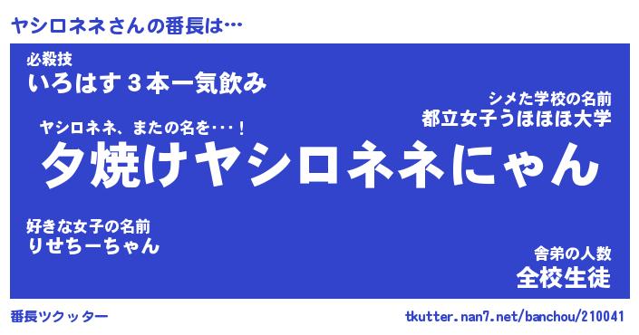 | 猫の名前『ヤシロネネーにゃん』性別『♀』 |