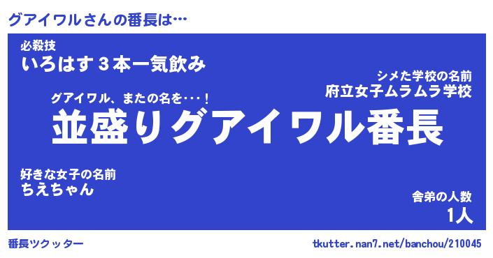 | 男性向けラノベタイトル風あだ名 | 『グアイワルの憂鬱』 |