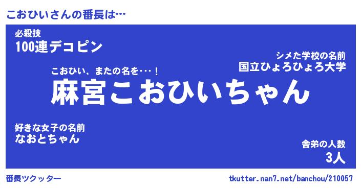 | ピコ太郎風あだ名 | 『ココ二郎』『ピコ次郎』『コオ一郎』 |