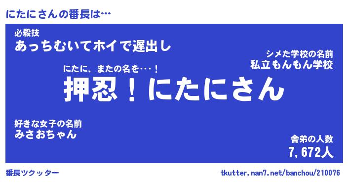 | ヘコむあだ名 | 『にたもー』『つくし』『にたお』 |