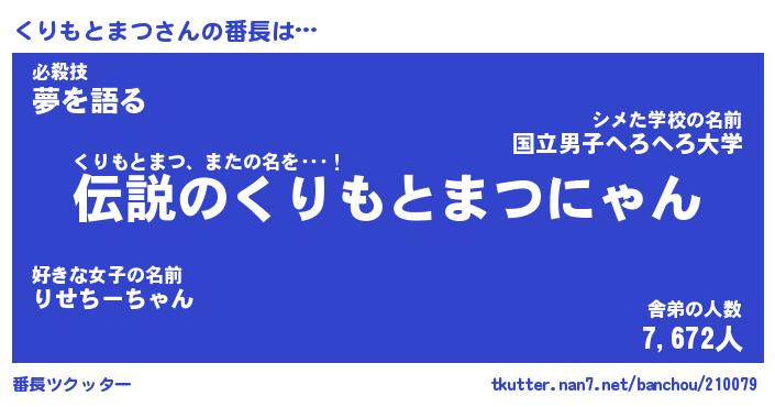 | 伝説のあだ名 | 『伝説の竜騎士くりもとまつ』 |
