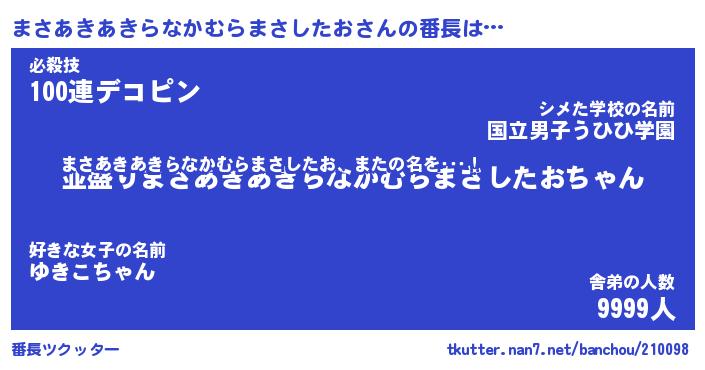 | 欧米人風あだ名 | 『マイケルまさあきあきらなかむらまさしたお』 |