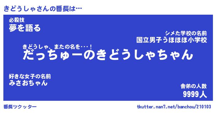 | 肩書あだ名 | 『きどうしゃ店長』『きどうしゃ国家主席』 |