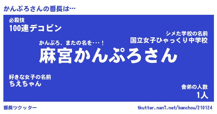 | 2回繰り返すあだ名 | 『かんかん』『かかんん』『ぽそぽそ』 |