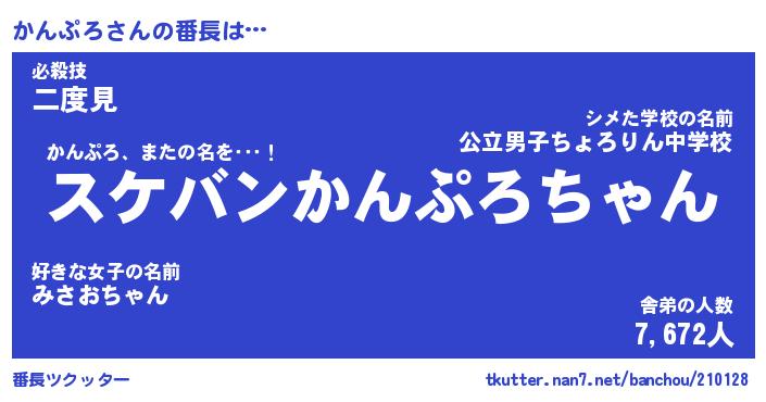 | 意味不明あだ名 | 『ペロリンかんぷろ』『永久保存かんぷろ』 |