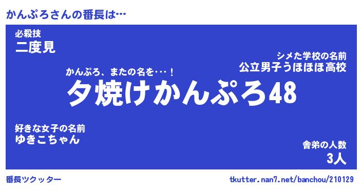 | 意味不明あだ名 | 『ペロリンかんぷろ』『永久保存かんぷろ』 |